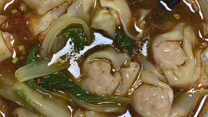 Ingredients for Sichuan Spicy Wontons: chili oil, light soy sauce, salt, small red chili peppers, Sichuan peppercorn powder, chicken essence, ginger, green onions, garlic, vegetable leaves, eggs, wonton wrappers, white sugar, pork fat, Sichuan pepper oil, oyster sauce. Method for making Sichuan Spicy Wontons: Step 1: Purchase tender front shoulder meat or plum head meat.